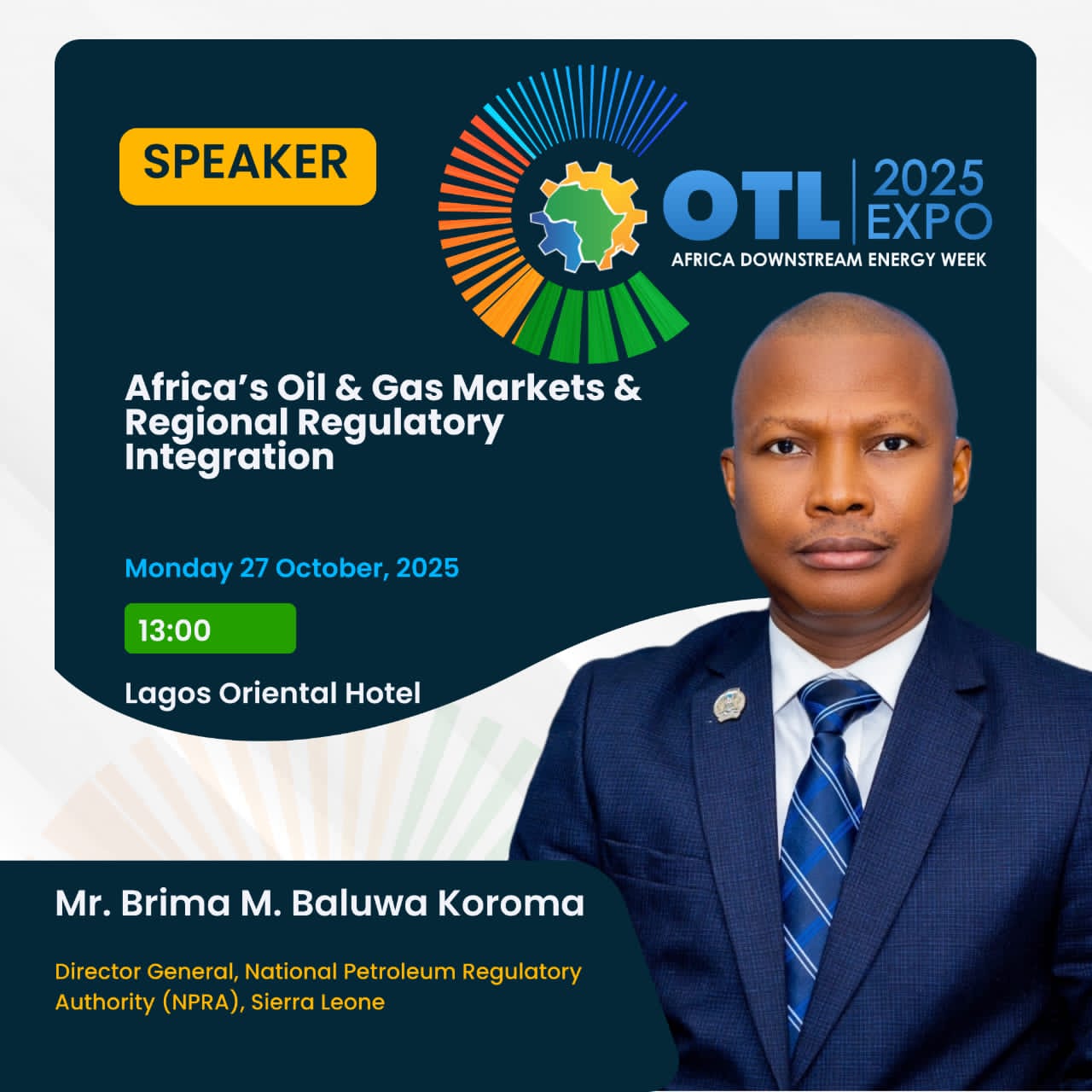 The Director General of the National Petroleum Regulatory Authority (NPRA), Brima Baluwa Koroma has been invited by OTL- Africa for the 2025 Expo Africa Energy Week as a Guest Speaker scheduled from the 27th to the 28th October 2025 in Lagos.
